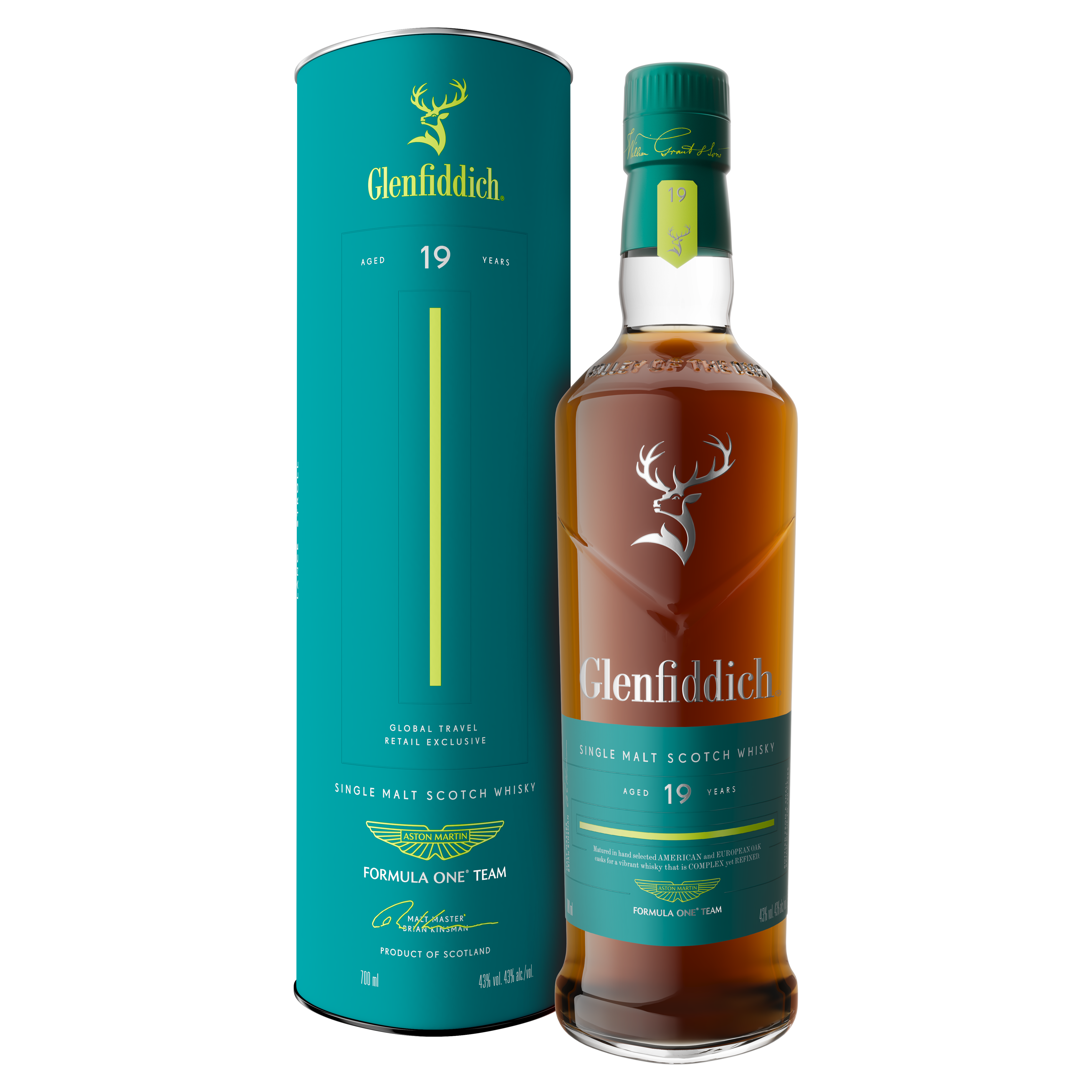Glenfiddich has unveiled a global travel retail exclusive bottling, Glenfiddich 19-Year-Old Single Malt Scotch Whisky, crafted to honor year one of a multi-year partnership with the Aston Martin Formula One Team.